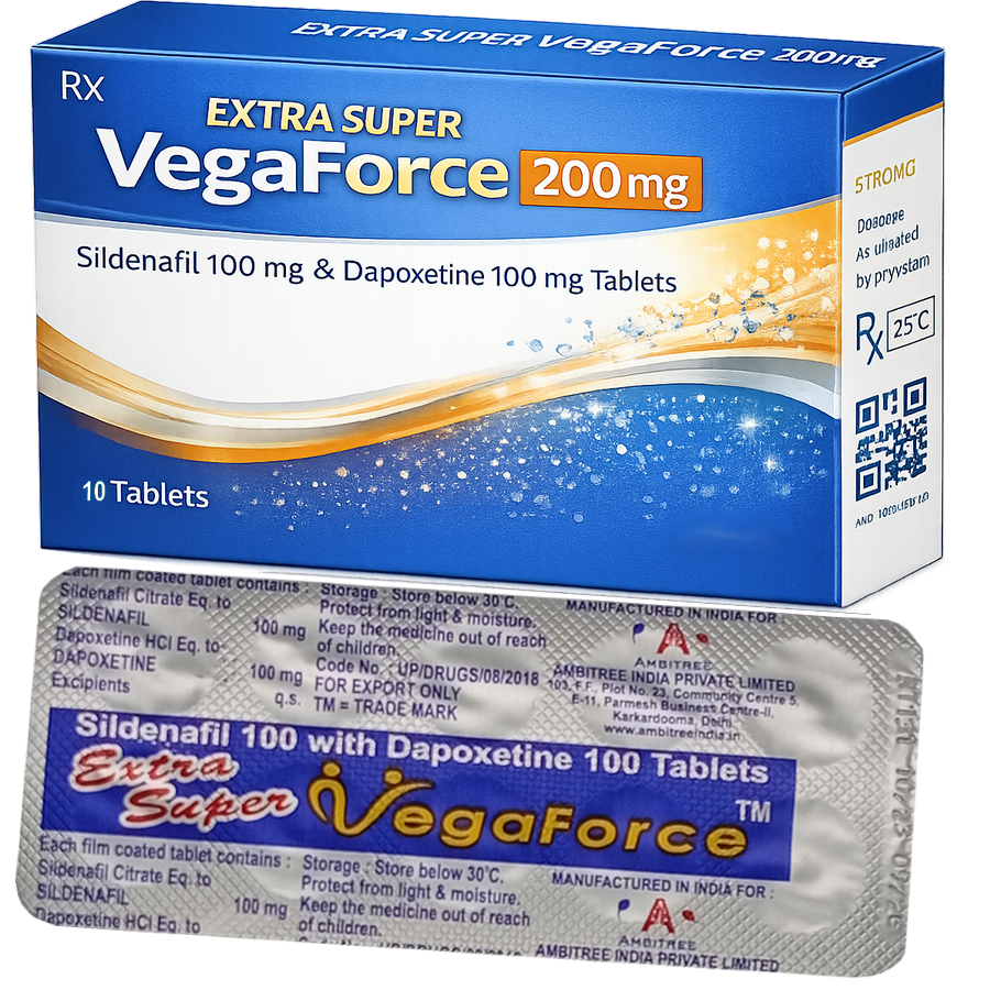 Extra Super Vega Force 200mg je vylepšená Kamagra 100mg o 100mg Dapoxetinu určená pre mužov ktorý majú problémy s predčasnou ejakuláciou.