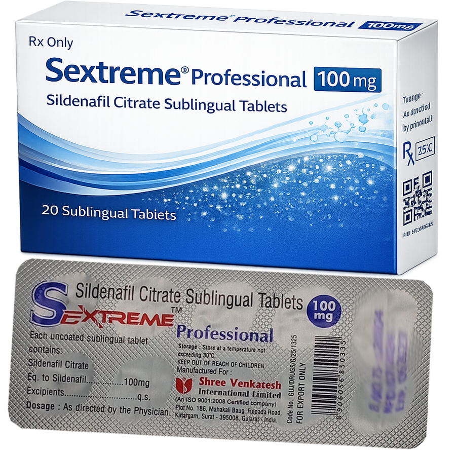 Sextreme Professional 100mg Subligvál je najrýchlejšia náhrada (genericum) Viagry Pfizer 100mg. Obsahuje tú istú účinnú látku ako Viagra (Sildenafil Citrate)